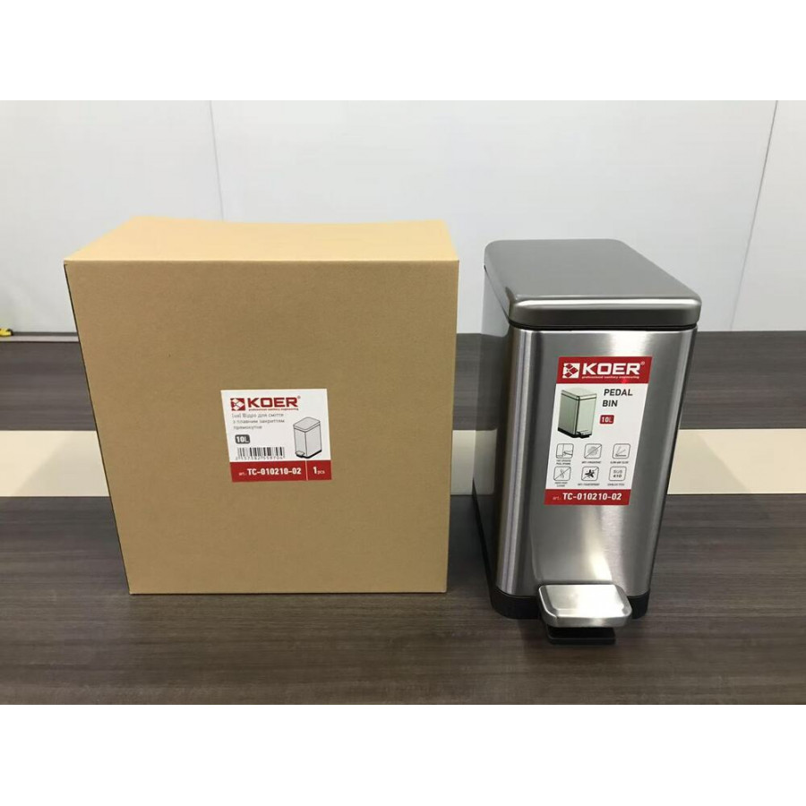 Ведро для мусора с плавным закрытием прямоугольное Koer TC-010210-02 10 л цвет нержавейка (KR5597)
