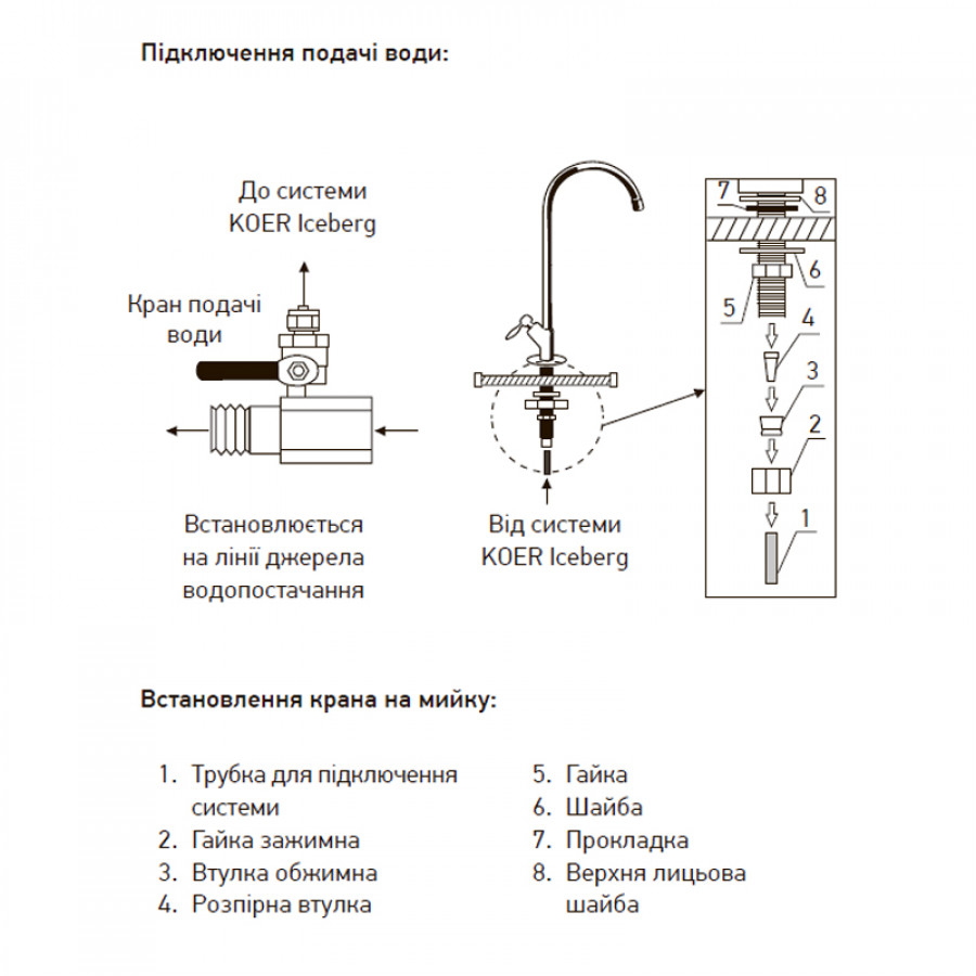 Монтаж системы очистки KOER KV.01 ICEBERG можно выполнить самостоятельно или заказать услугу в нашем интернет-магазине. Для обеспечения стабильной работы и долговечности системы рекомендуется: