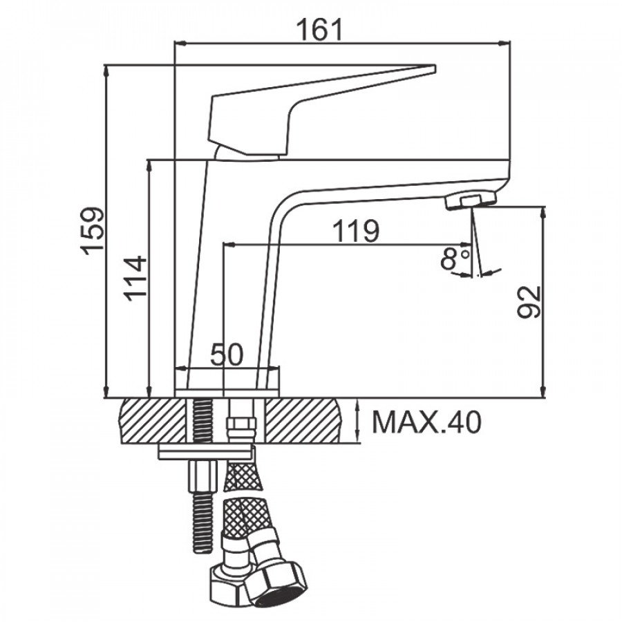 - Тип монтажа: на умывальник (однорычажный смеситель)