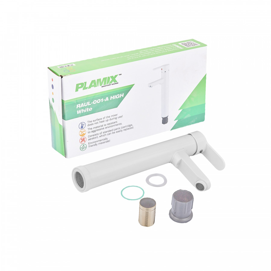 Выбирайте смеситель Plamix Raul-001-A HIGH White в нашем интернет-магазине сантехники и наслаждайтесь комфортом и надежностью каждый день!