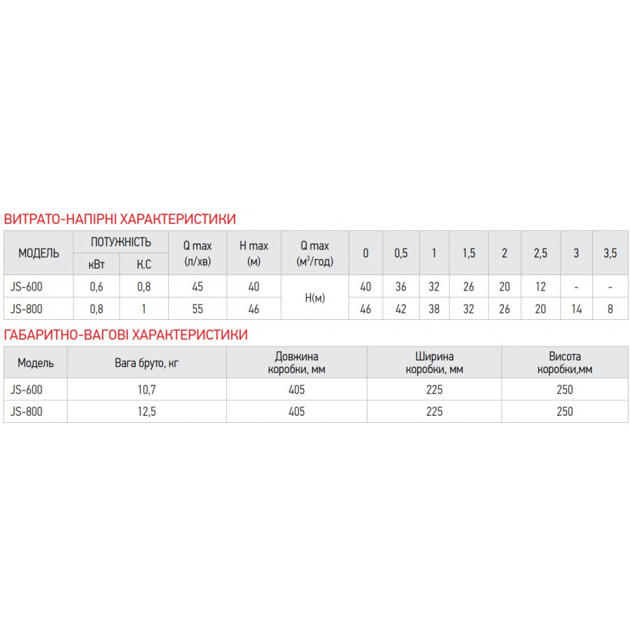 Основные характеристики насоса Koer JS-600