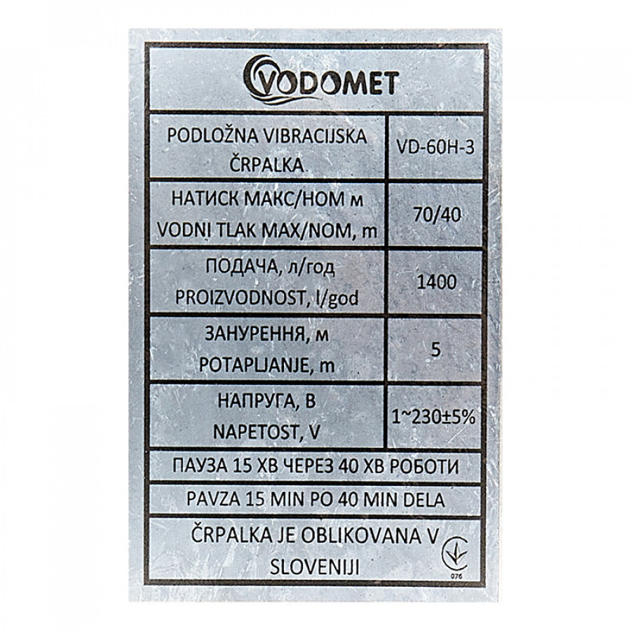 Выбирая Вибрационный насос Vodomet VD-60H-3, вы получаете: