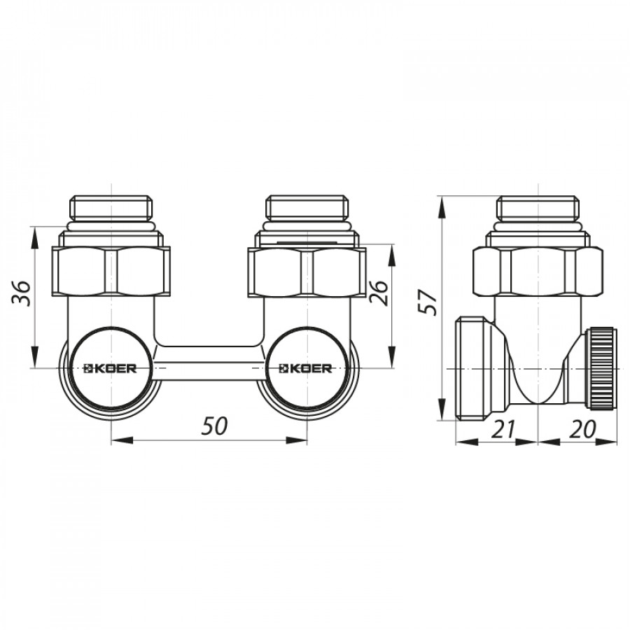 Узел нижнего подключения радиатора 3/4'' угловой (комплект) Koer KR.1132 (KR2816) – надежное решение для вашей системы отопления