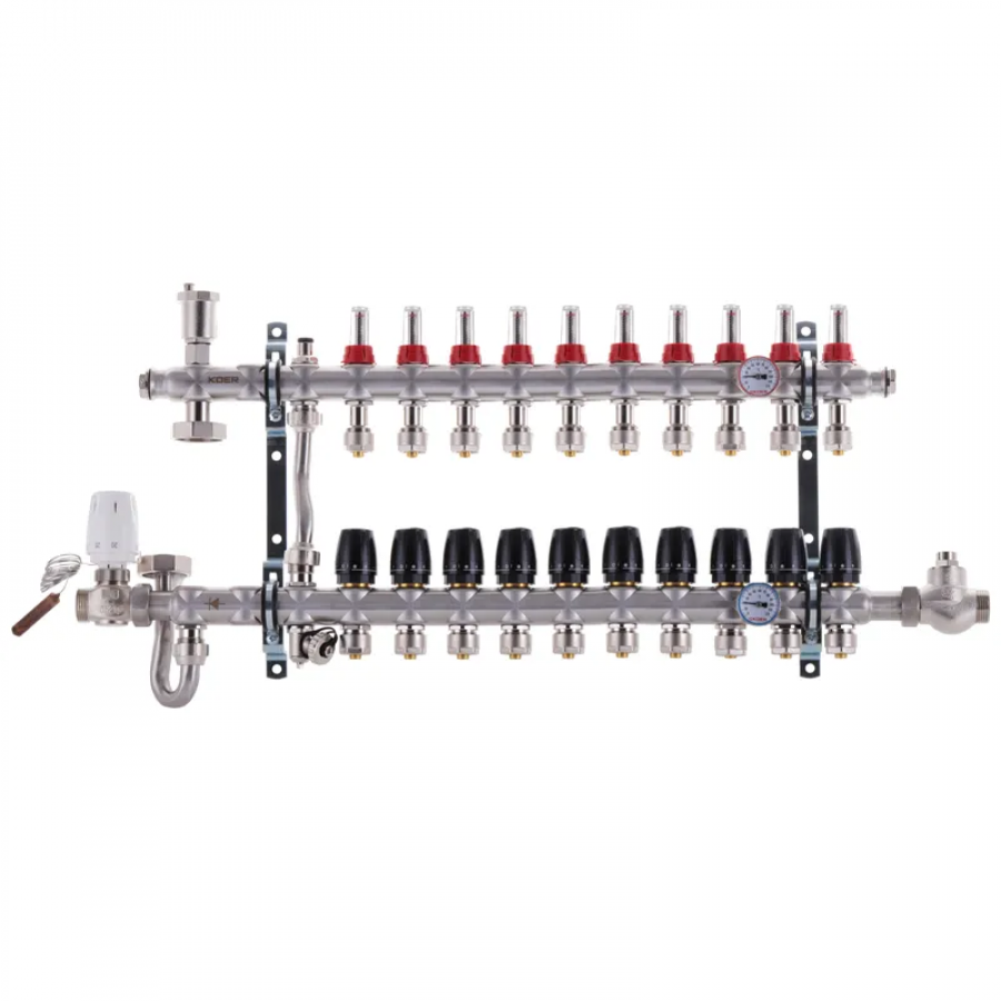 Коллектор с встроенным смесительным узлом Koer KR.S1011-10 1" х10 SUS304 и евроконус 3/4-16 (KR2933) – идеальное решение для теплого пола