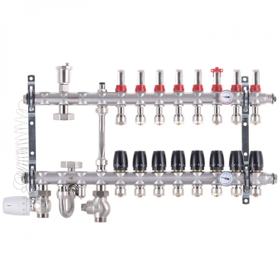 Коллектор с встроенным смесительным узлом KOER KR.S1012-8 – это надежный и функциональный элемент системы теплого пола, который обеспечивает равномерное распределение тепла, удобство монтажа и долговечность эксплуатации. Он станет оптимальным выбором для тех, кто ценит качество, комфорт и эффективность в отоплении.