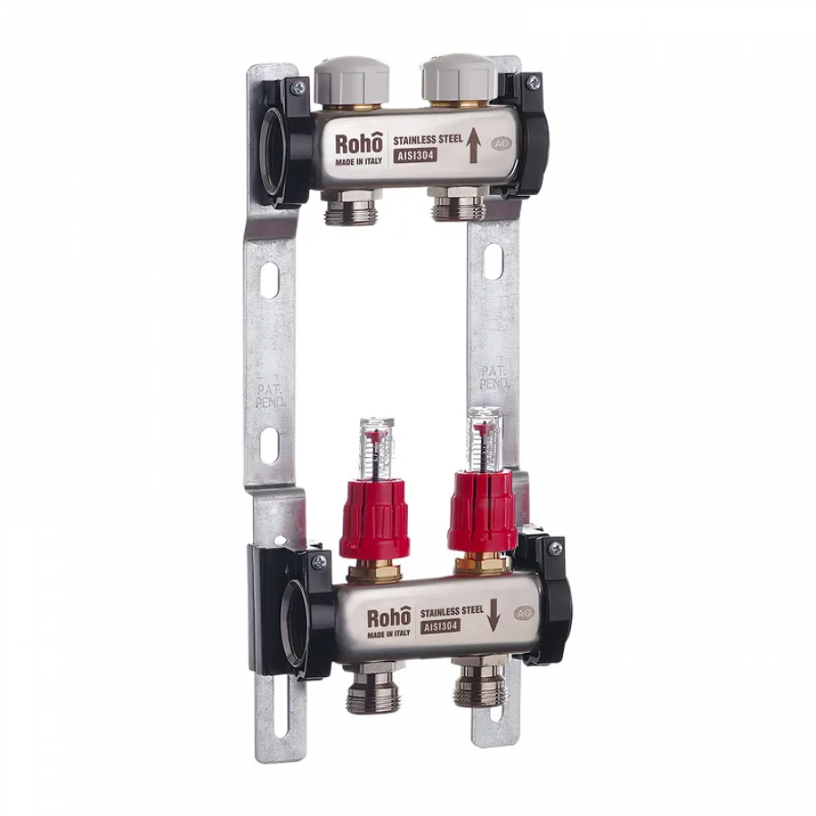 Коллектор с расходомером и термостатическими клапанами Roho R804-02 - 1"х 2 выхода (RO0034)