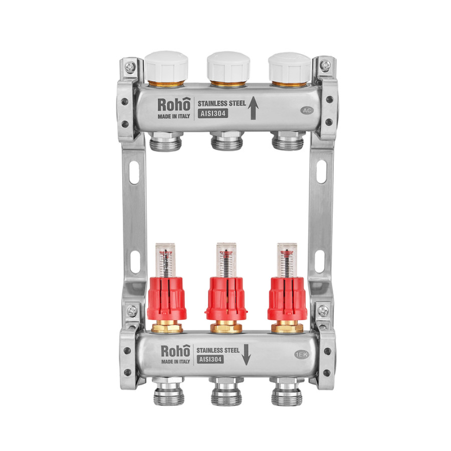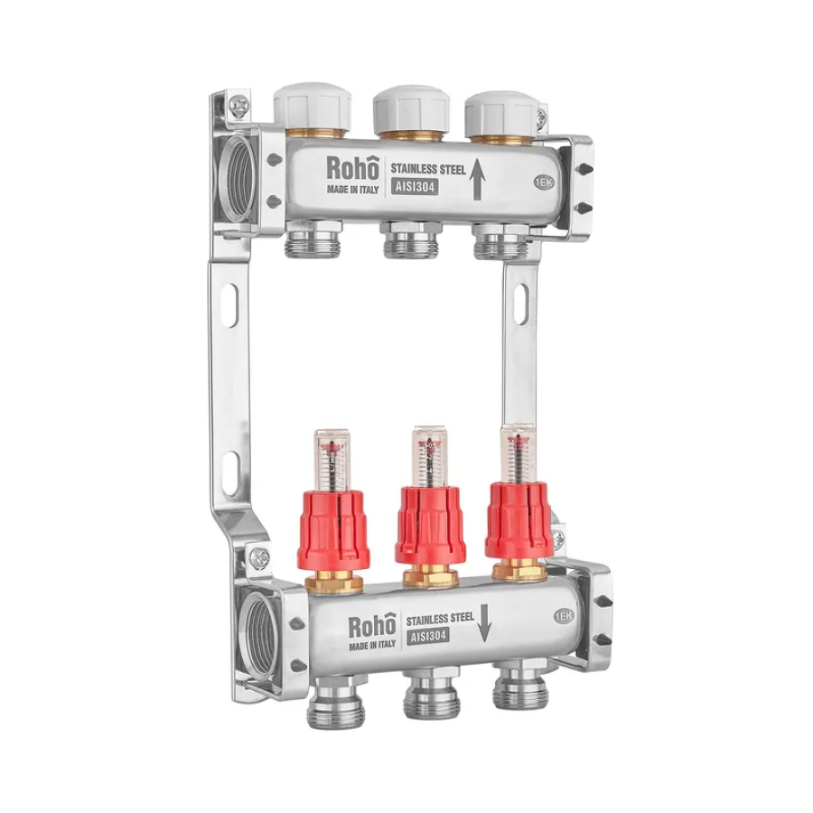 Коллектор с расходомером и термостатическими клапанами Roho R804-03M - идеальное решение для водяного теплого пола