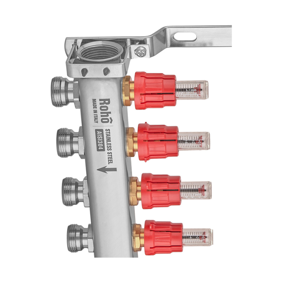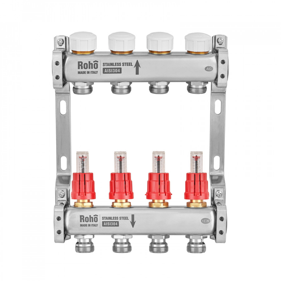 Коллектор с расходомером и термостатическими клапанами Roho R804-04M - 1"х 4 вых. (RO1029)