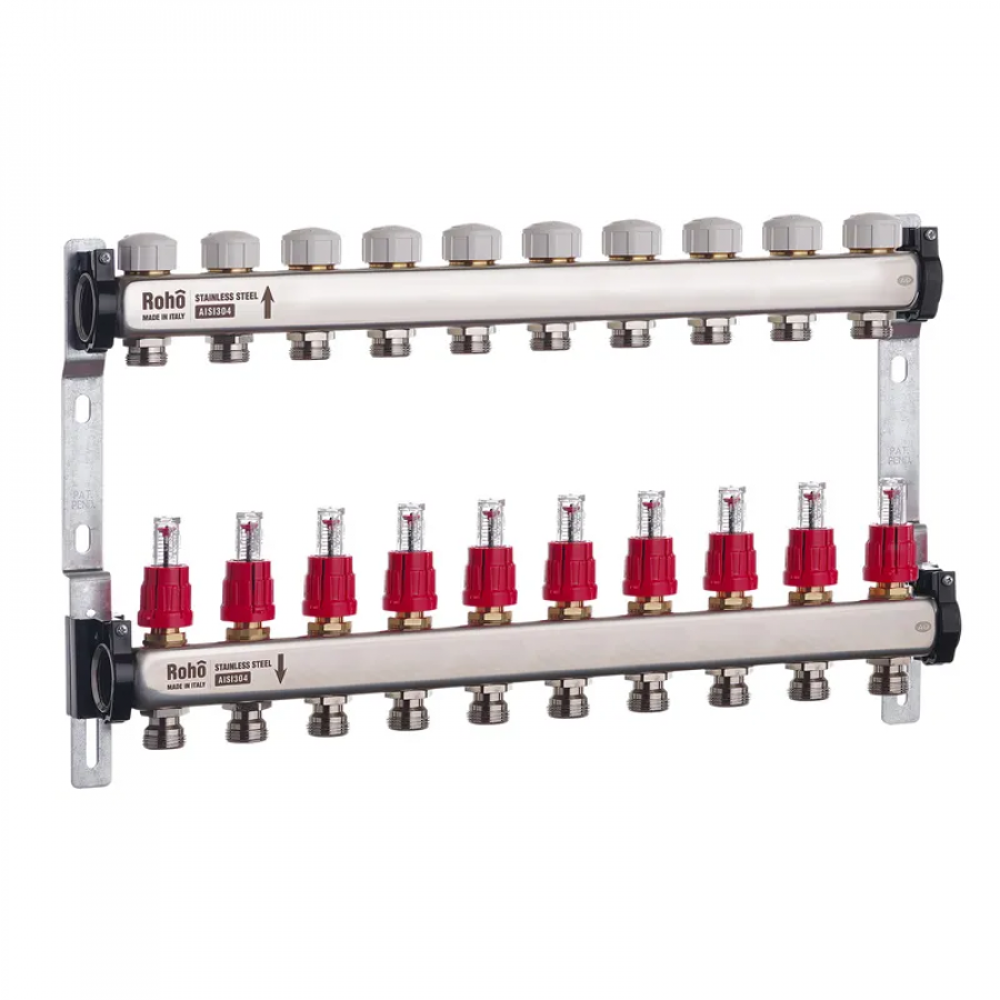 Коллектор с расходомером и термостатическими клапанами Roho R804-10 - идеальное решение для теплого пола