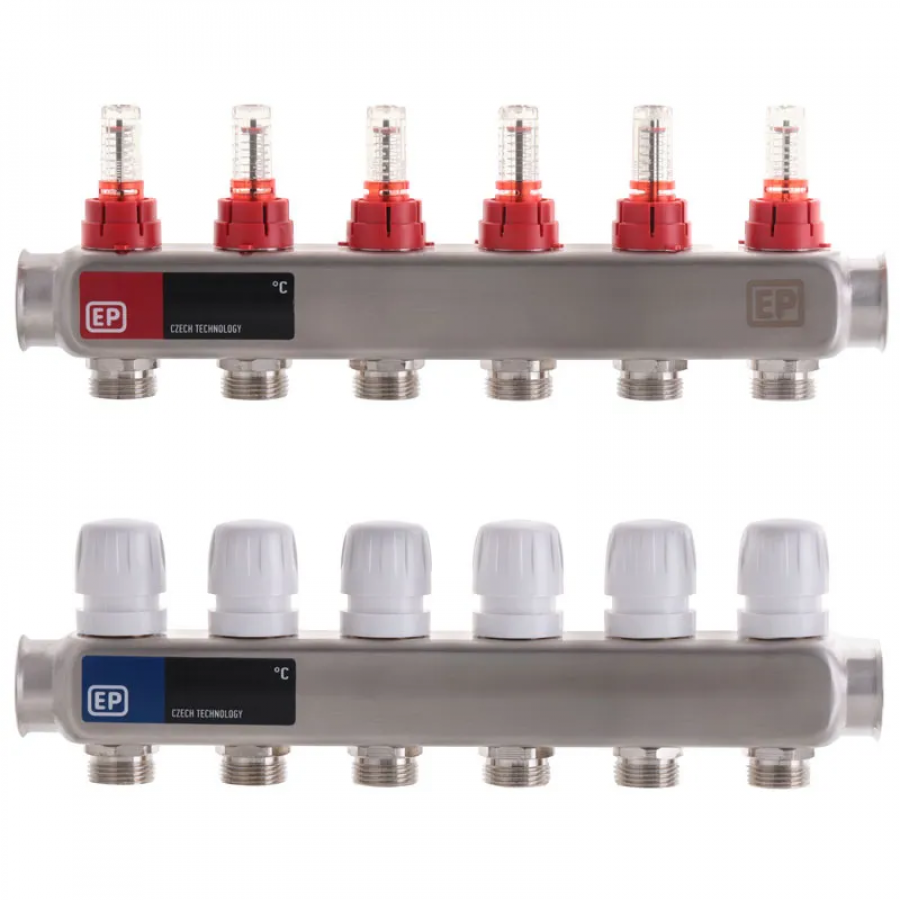 Коллекторный блок с расходомерами Europroduct EP.S1110-06 1" x6 (EP4982) – надежное решение для систем теплого пола