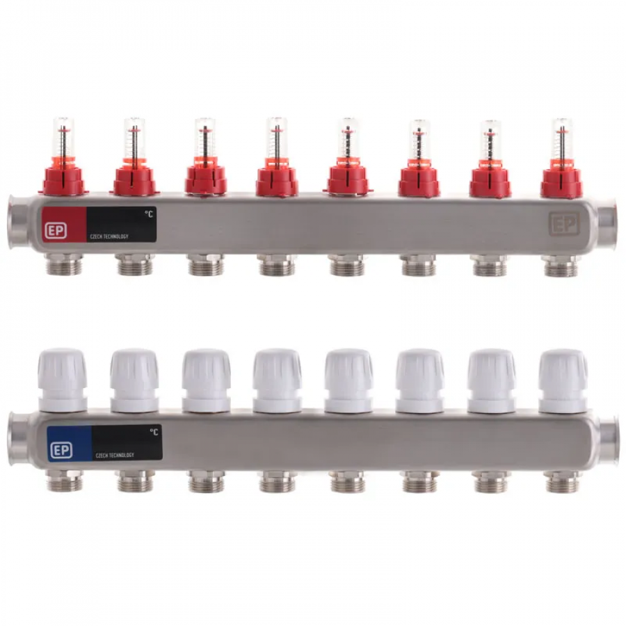 Коллекторный блок с расходомерами Europroduct EP.S1110-08 1"x8 (EP4984) – надежное решение для теплого пола