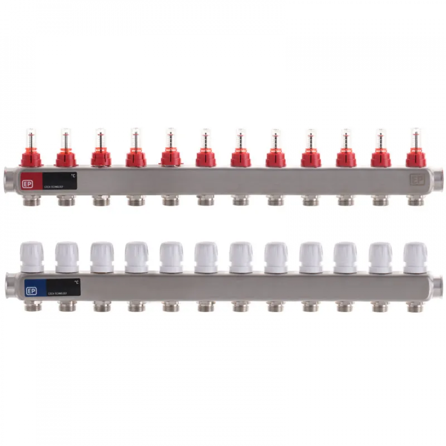 Коллекторный блок с расходометрами Europroduct EP.S1110-12 1"x12 (EP4988) – надежное решение для систем теплого пола