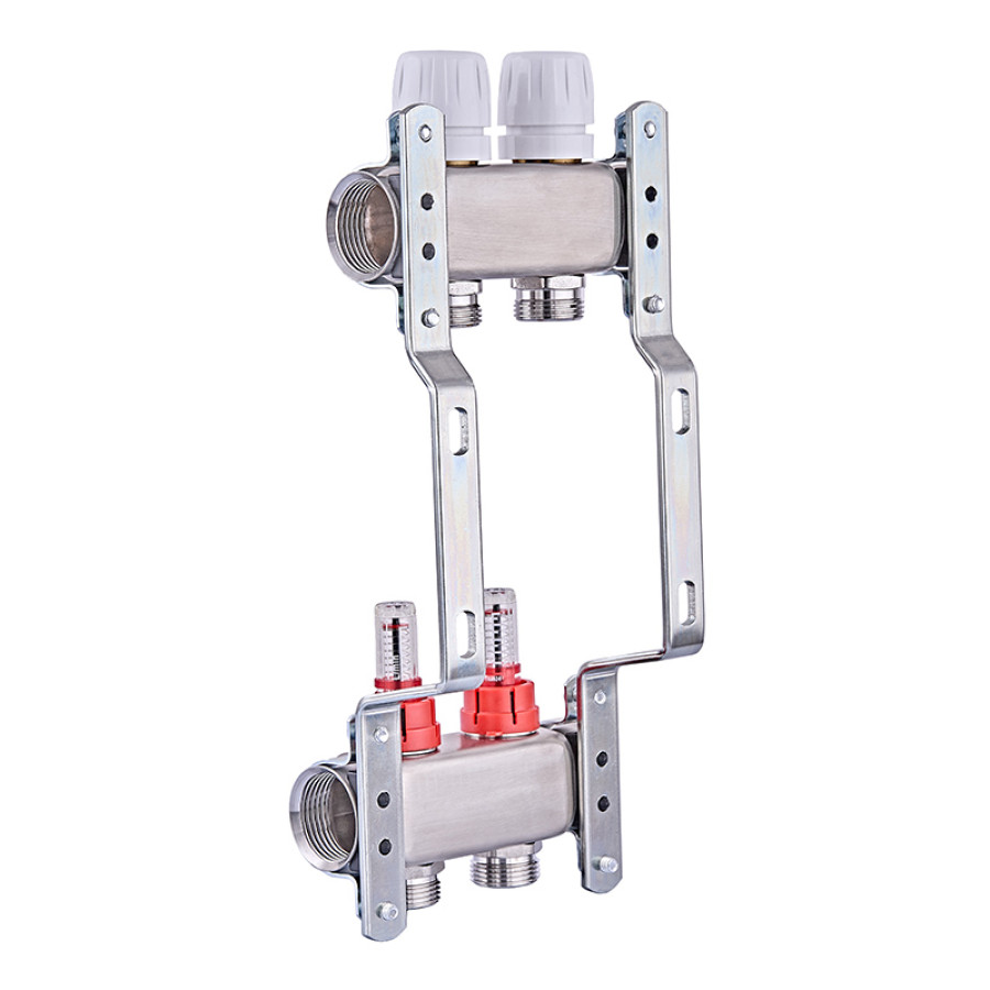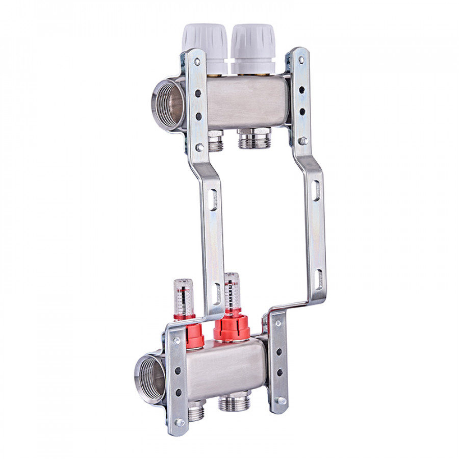 Коллекторный блок с расходомерами Nolf NF.2100-02S 1"x2 (корпус нержавеющая сталь): Надежное решение для водяного теплого пола