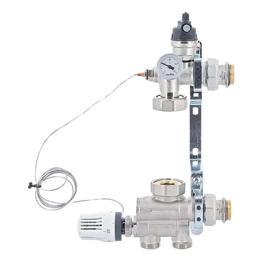 - Оптимальный температурный режим: узел обеспечивает эффективное смешивание потоков воды, благодаря чему система теплого пола работает стабильно и безопасно.