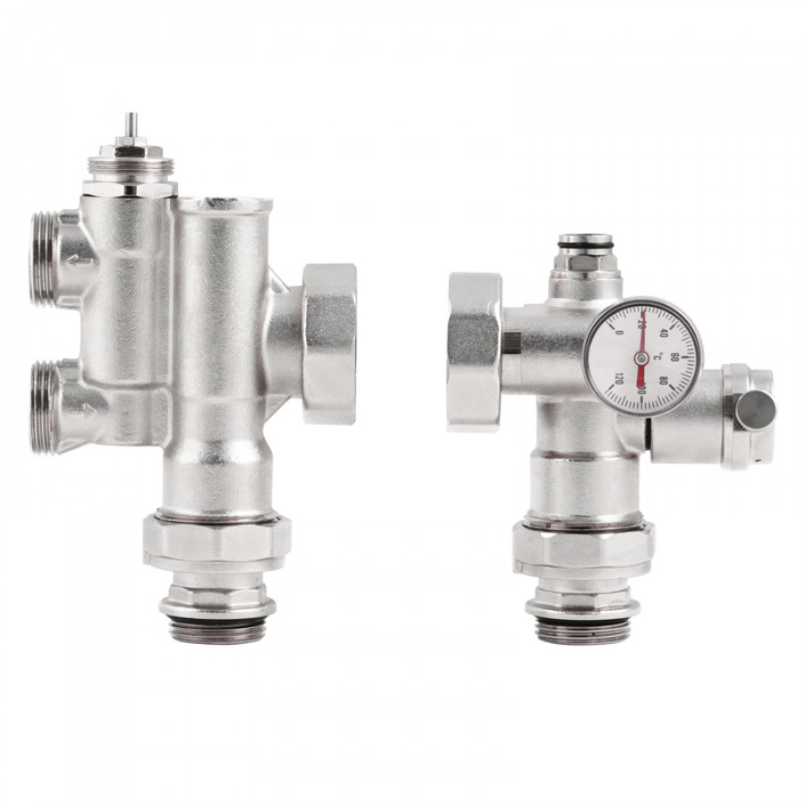 Смешивающий узел Koer KR.1022 отвечает за регулирование температуры теплоносителя, поступающего к контурам теплого пола. Поскольку теплоноситель из котла или другого источника отопления имеет высокую температуру, прямое его подача в теплый пол может привести к повреждению труб или дискомфорту в помещении. Узел смешивает горячую воду с охлажденной, поддерживая оптимальный режим, что обеспечивает: