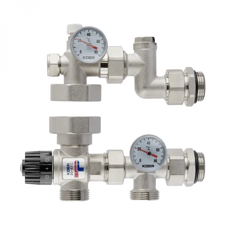 Смешивающий узел Koer KR.2022 - 1" с термостатическим смешивающим клапаном 20-43°C (KR5469)