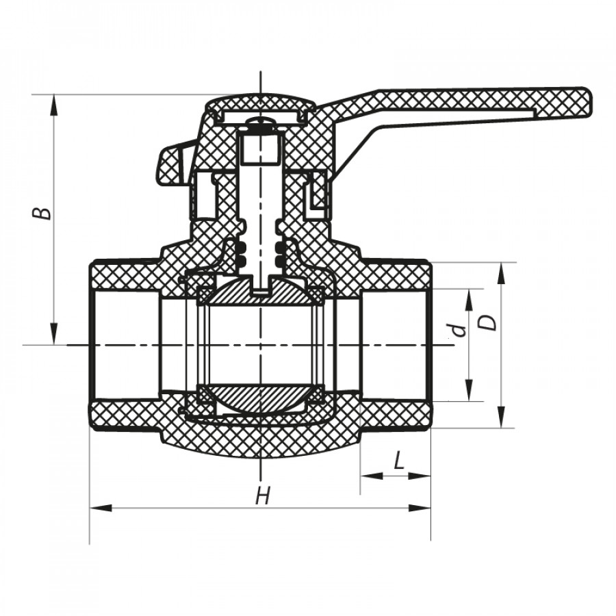 - Тип: шаровой затвор с PPR (полипропиленовой) основой;