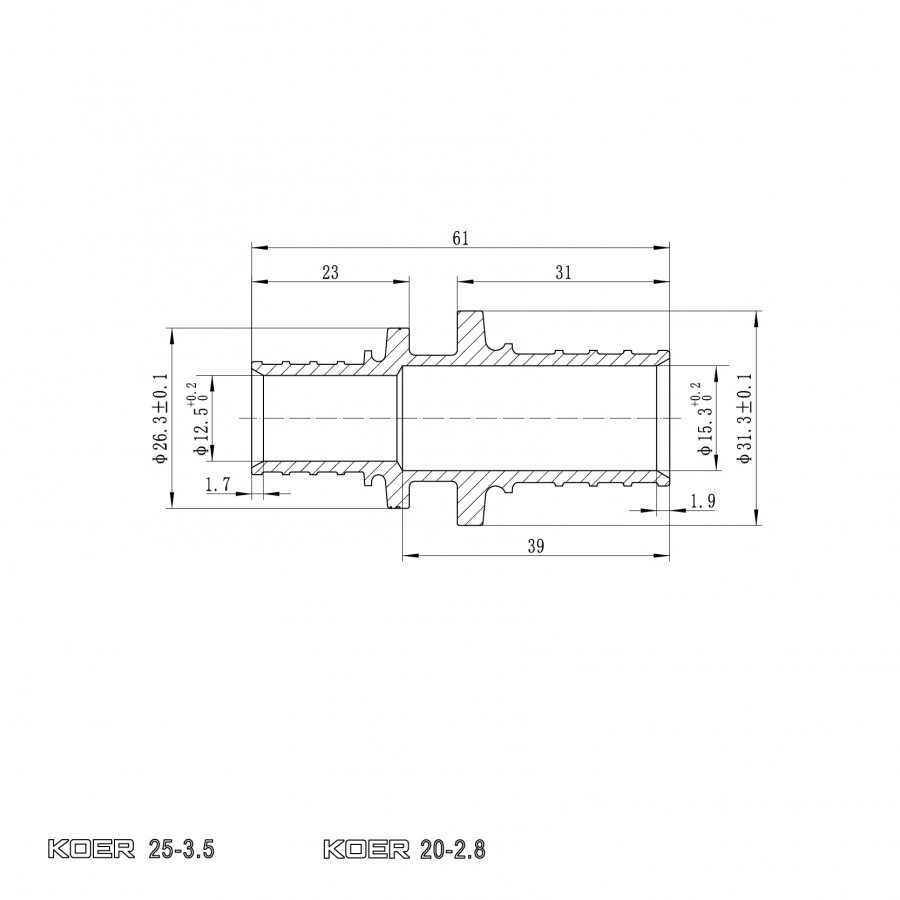 Муфта соединительная переходная Koer KA.С20-25 - 20(2.8mm) x 25(3.5mm) (KR4860)