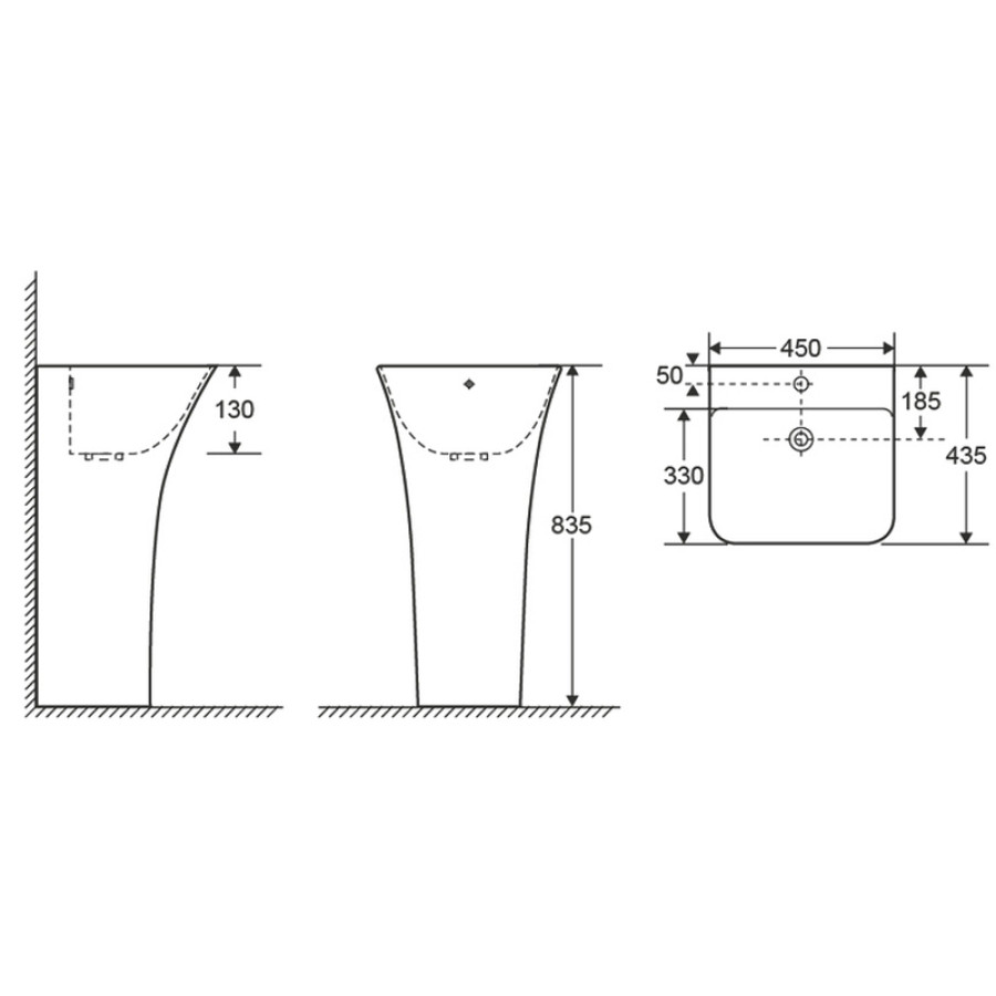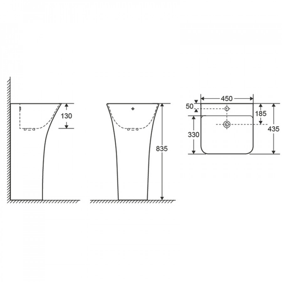 Раковина моноблок Mixxus BEVEL-1101 с отверстием под смеситель и переливом 450х435х835mm (MI6697)