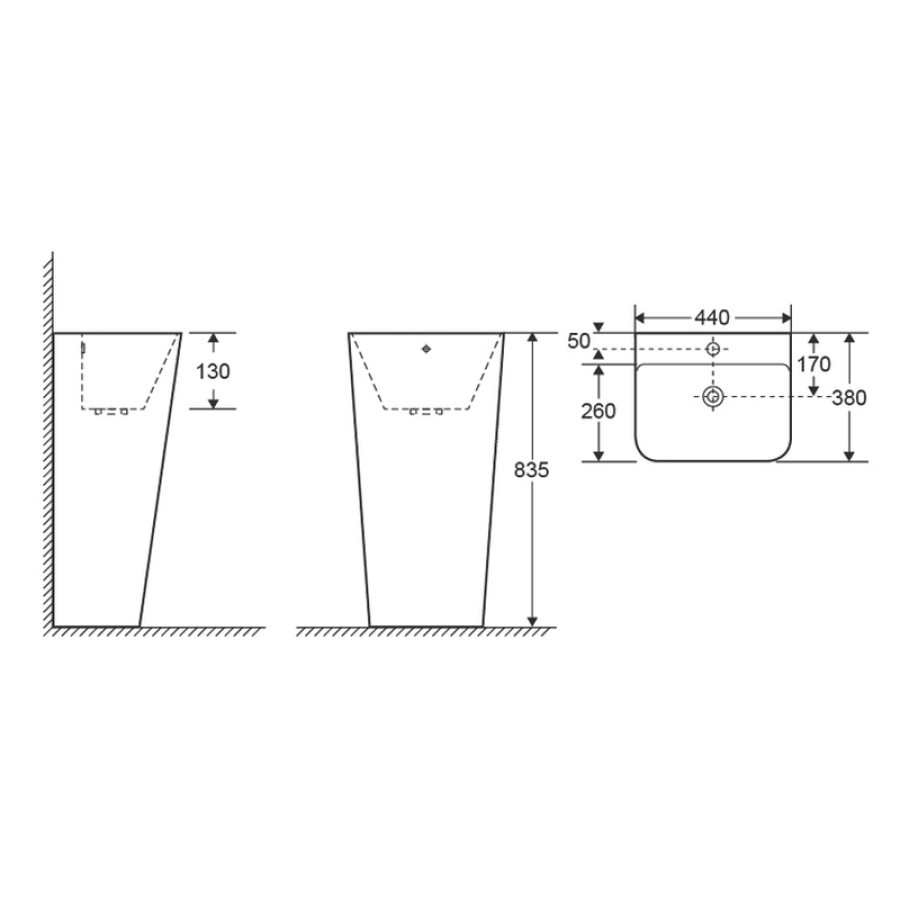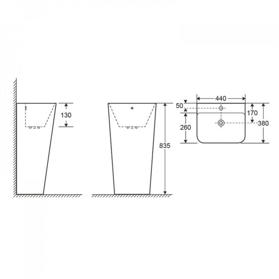 Раковина моноблок Mixxus STYLE-1101 с отверстием под смеситель и переливом 440х380х830mm (MI6696)