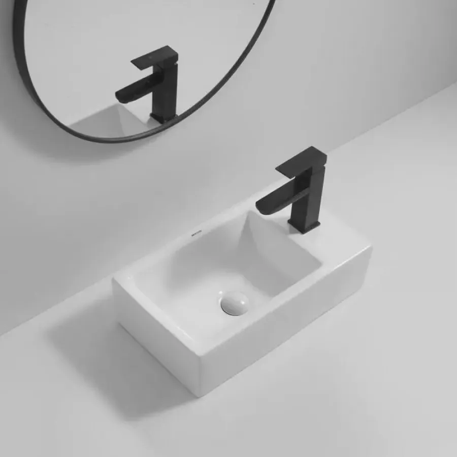 - Тип установки: накладная раковина, позволяющая легко смонтировать её на столешницу или тумбу.