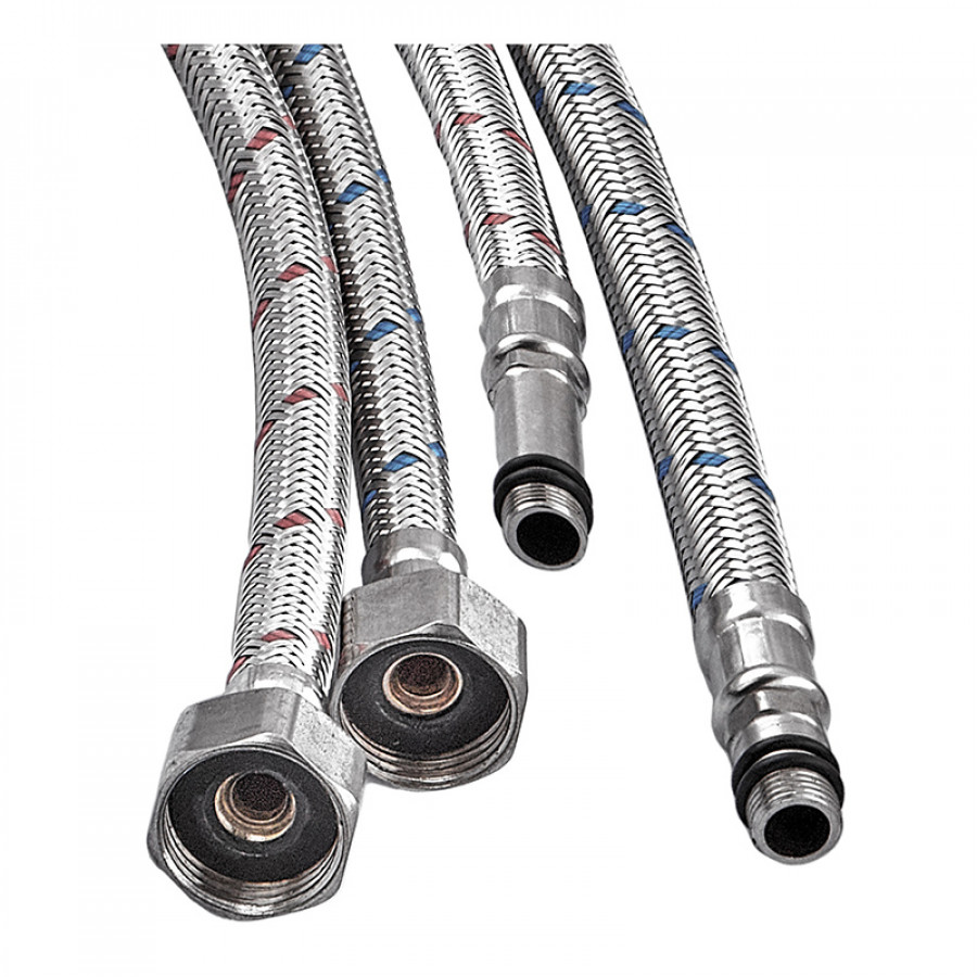 - Комплект из двух шлангов – оптимальное решение для одновременного подключения горячей и холодной воды.