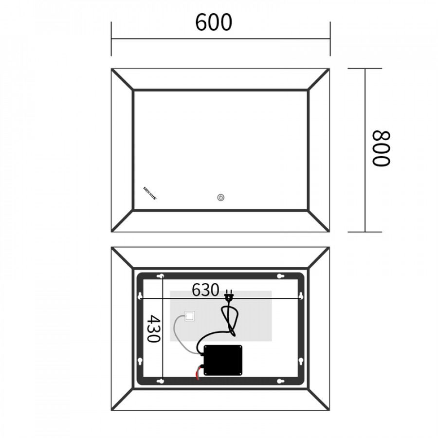 Зеркало Mixxus Premium CUBIC MR14-80x60-REVERSE (LED Touch, Anti-fog, диммер) (MP6648)