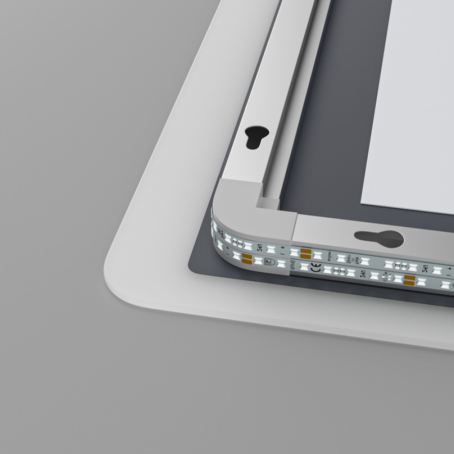 - Тонкая LED-рамка, равномерно освещающая лицо без теней;