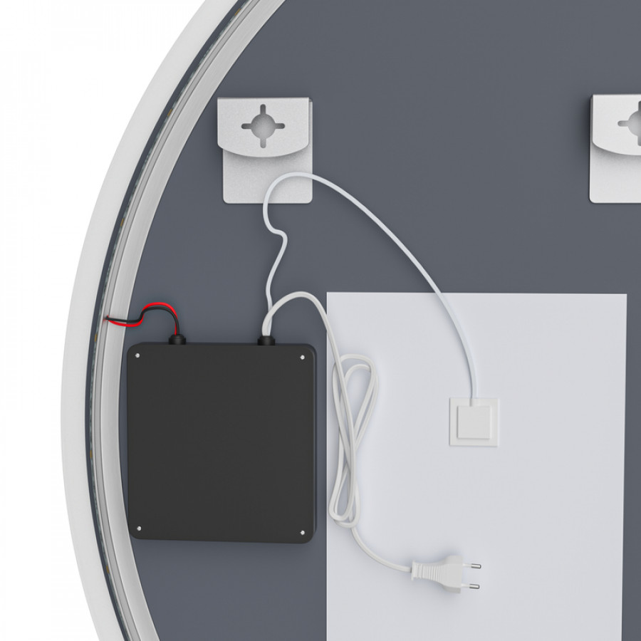 Зеркало оснащено надежным LED модулем с ресурсом работы более 30 000 часов. Функция диммера позволяет плавно регулировать яркость освещения, а также выбирать цветовую температуру света от 3000К (теплый свет) до 6500К (холодный свет), что идеально подходит для макияжа, бритья или просто комфортного освещения ванной комнаты.