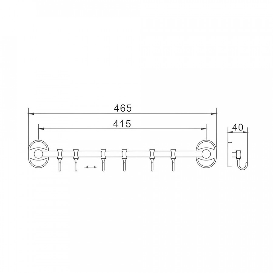 Планка с 6-ю крючками 415 мм Haiba HB1915-6 (HB0726)