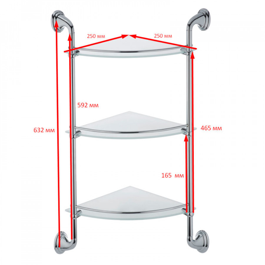 Полиця у ванну кутова скляна 3-ярусна Zerix LR1507-3 (LL1409)