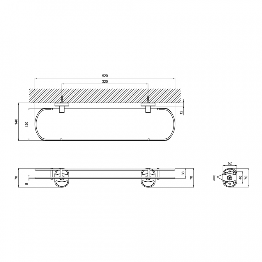 - Висока якість матеріалів: полиця виготовлена зі загартованого скла товщиною 6 мм, що гарантує міцність та довговічність експлуатації;