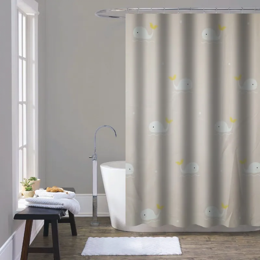 Обираючи штору для ванної Zerix SCT-010-180x180, ви отримуєте не просто функціональний аксесуар, а й стильний елемент декору. Візерунок із китом на бежевому фоні створює легку, природну атмосферу, яка допоможе розслабитися після важкого дня.