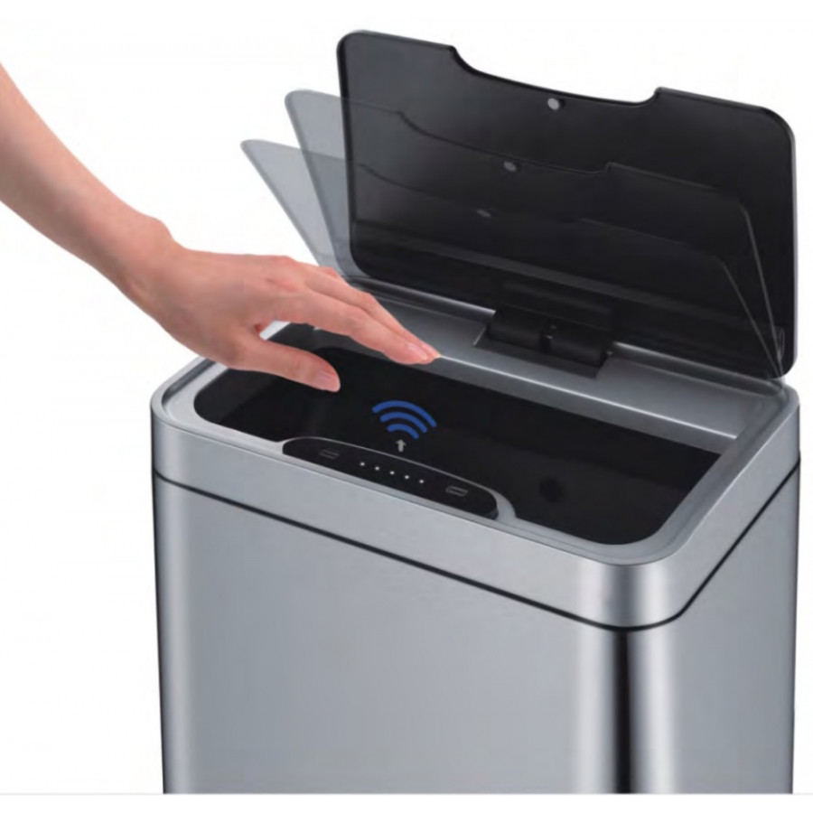 - Сенсорне управління – автоматичне відкривання кришки при піднесенні руки забезпечує максимальну гігієнічність та зручність використання.