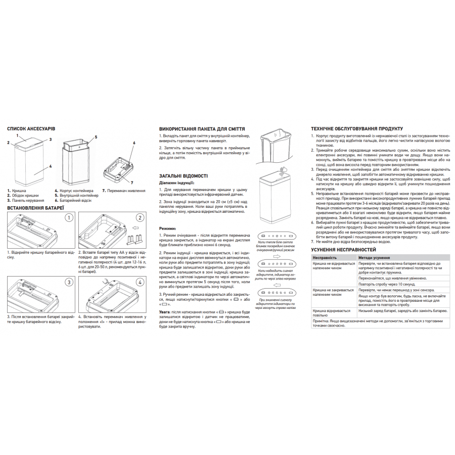 - Безконтактному відкриттю кришки – це знижує ризик розповсюдження бактерій і забезпечує комфорт під час використання.