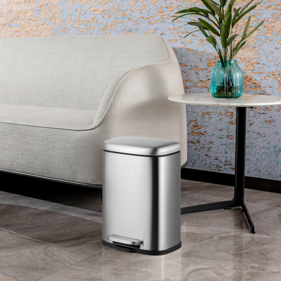 Практичність і естетика – прямокутна форма відра допомагає оптимально використовувати простір у ванній кімнаті. Стильний металевий корпус у кольорі нержавіючої сталі гармонійно впишеться в сучасний інтер’єр, додаючи йому нотки мінімалізму та елегантності.