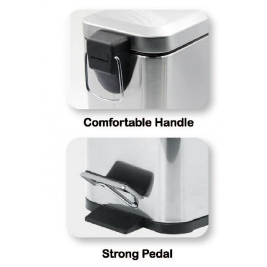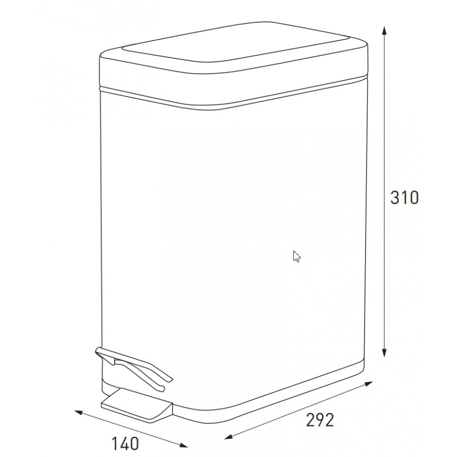 - Об’єм 5 літрів – оптимальний розмір для ванної кімнати, що дозволяє зручно збирати побутові відходи, не займаючи багато місця.