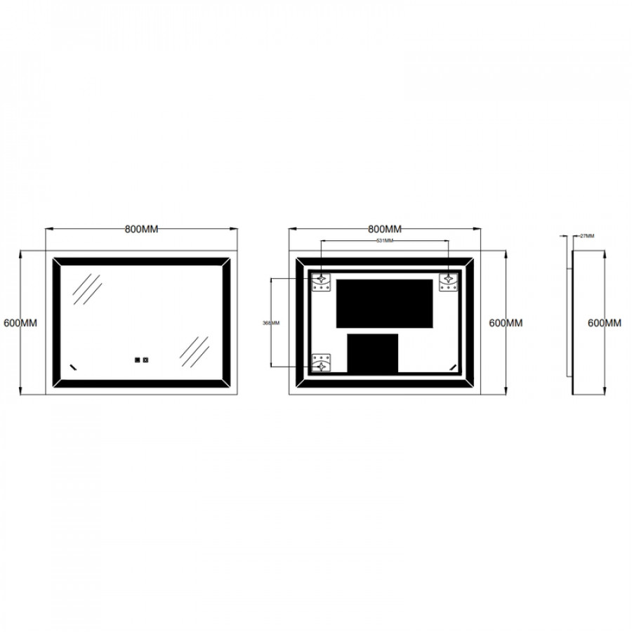 Дзеркало Zerix Kubix MR04-80x60-REVERSE з LED Touch, Anti-fog, димером, регулятором яскравості (ZX6054)