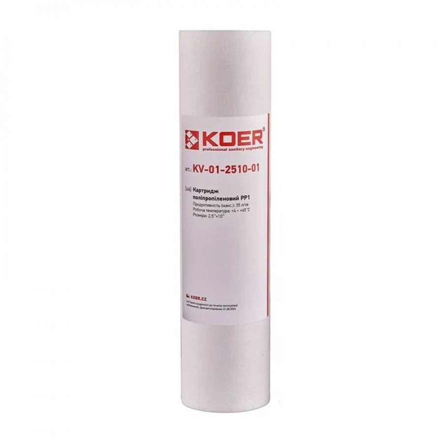Не ризикуйте своїм здоров’ям та комфортом – обирайте перевірені рішення для очищення води. Картридж поліпропіленовий PP1 Koer KV.0001 (KR3155) – ваш надійний захист від забруднень, що забезпечить чисту та безпечну воду для всієї родини.