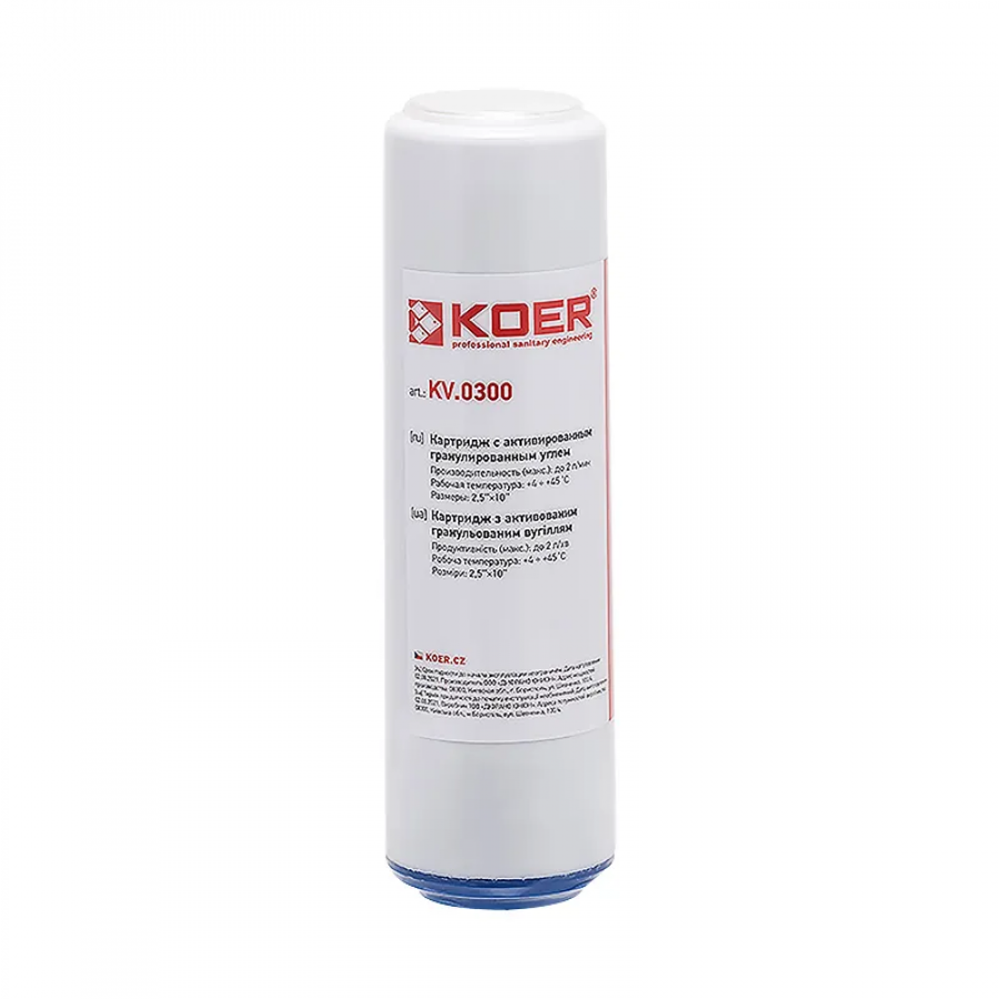 Картридж з активованим гранульованим вугіллям Koer KV.0300 (KR3164) – це оптимальний вибір для тих, хто цінує якість, безпеку та комфорт у щоденному споживанні води. Забезпечте свою сім’ю чистою та корисною водою вже сьогодні!