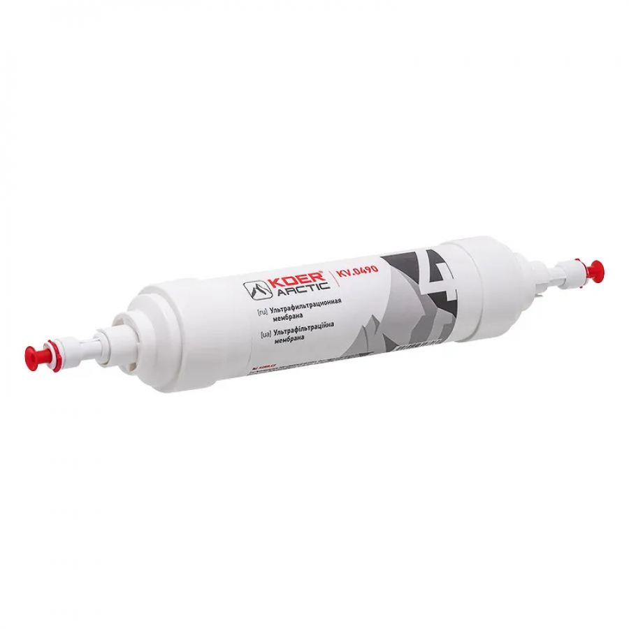 Ультрафільтраційна мембрана KOER KV.0490 ARCTIC діє за принципом механічної фільтрації, пропускаючи молекули води та розчинені мінерали, але затримуючи більші за розміром частинки та забруднення. Це означає, що в очищеній воді залишається корисний мінеральний склад, а небезпечні органічні домішки, бактерії та віруси – повністю видаляються.