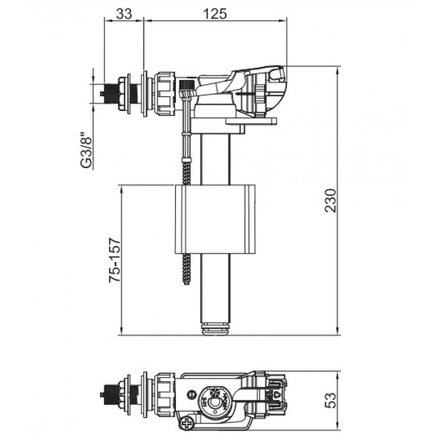 Арматура наповнювальна Koer KT-0106-3/8" з боковим підключенням та пластиковим різьбленням 3/8" (KR