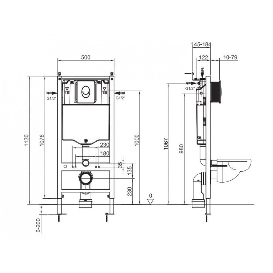 Інсталяція Koer KT-0503-01 має міцний каркас із сталі, покритий антикорозійним шаром, що забезпечує стійкість до вологи та механічних пошкоджень. Висота конструкції 1150 мм, ширина 500 мм, глибина 126 мм – це оптимальні параметри для стандартних сантехнічних ніш у ванних кімнатах.