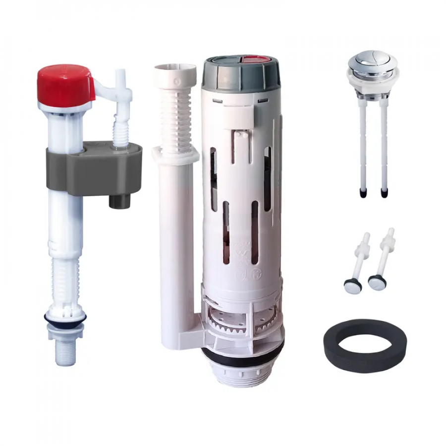 - Універсальність: Підходить для більшості інсталяційних систем та бачків з двокнопковим механізмом змиву.