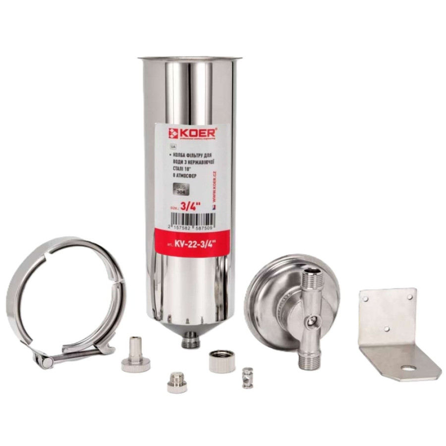 Колба фільтру для води з нержавіючої сталі Koer KV-22-3/4 8 атм. 3/4" (KR5875) — це оптимальний вибір для якості, довговічності та безпеки вашої водяної системи.