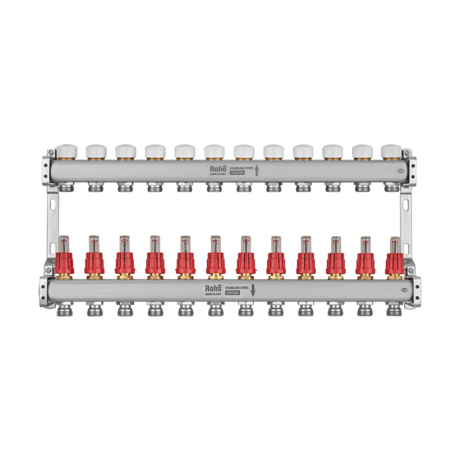 Огляд колектора з витратоміром та термостатичними клапанами Roho R804-12M - 1"x 12 вих. (RO1036)