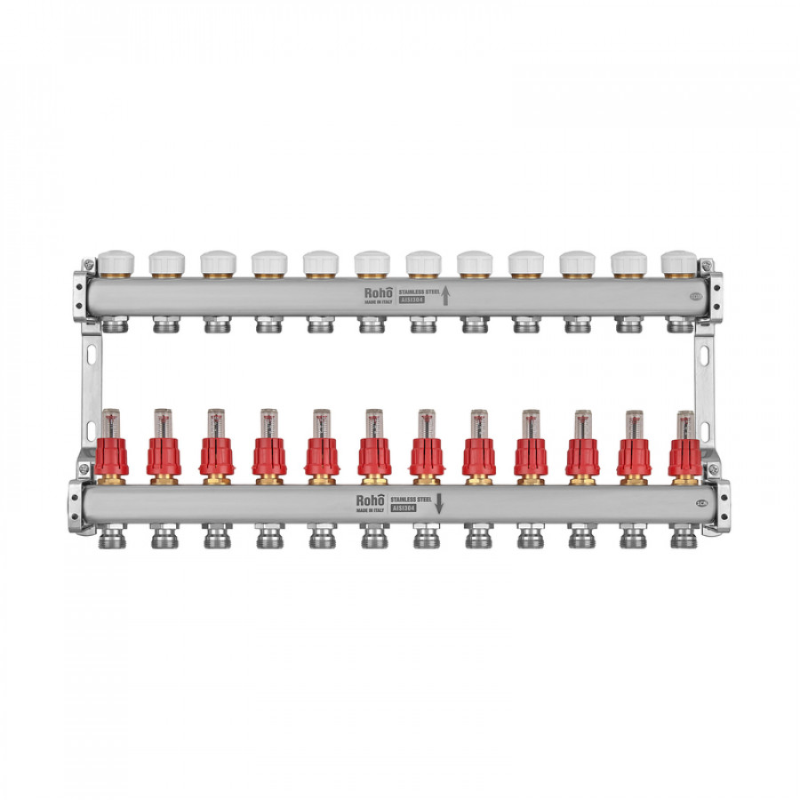 Колектор з витратоміром та термостатичними клапанами Roho R804-12M - 1"х 12 вих. (RO1036)