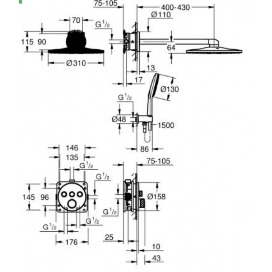 Душова система Grohe Grohtherm SmartControl — це ідеальне рішення для сучасної ванної кімнати, яке поєднує високий рівень комфорту, інноваційні технології та стильний дизайн. Вона розроблена для прихованого монтажу, що дозволяє зберегти естетику приміщення та зробити процес прийняття душу максимально приємним і зручним.