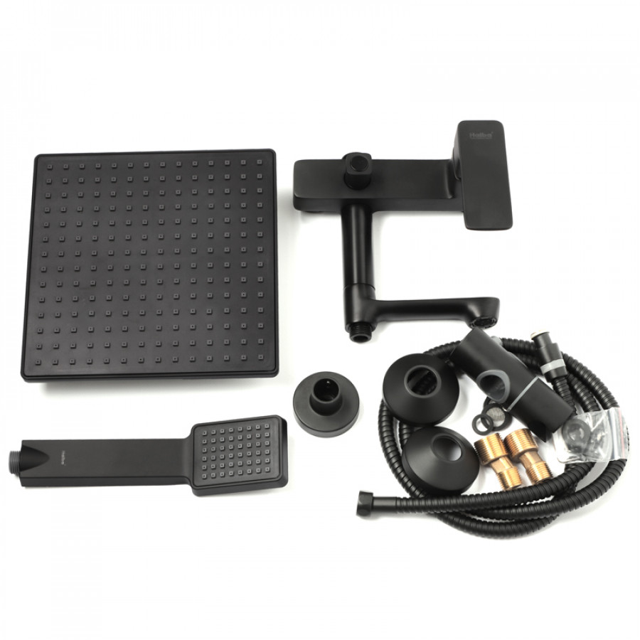 - Комплектація: верхній тропічний душ, ручний душ, змішувач з термостатом;