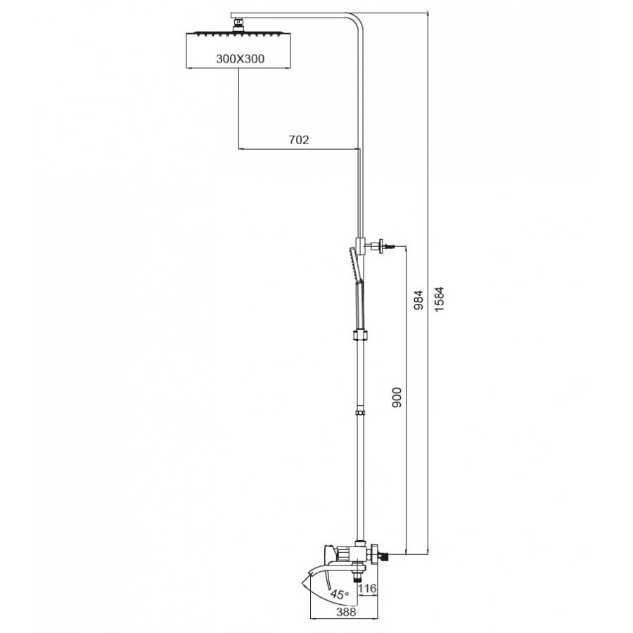 - Верхній душ: діаметр 200 мм, з регульованим кутом нахилу;